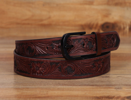 "Bespoke Elegance: Brown Hand Carving Leather Belt for Timeless Style" Art: LB-807