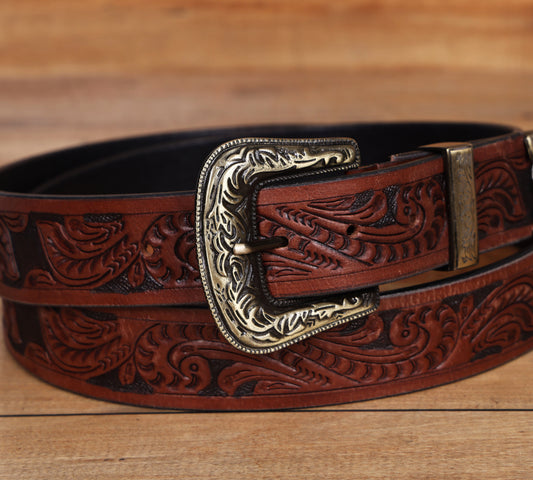 "Artisanal Flair: Hand-Carved Leather Belts Redefining Style" Art: LB-814