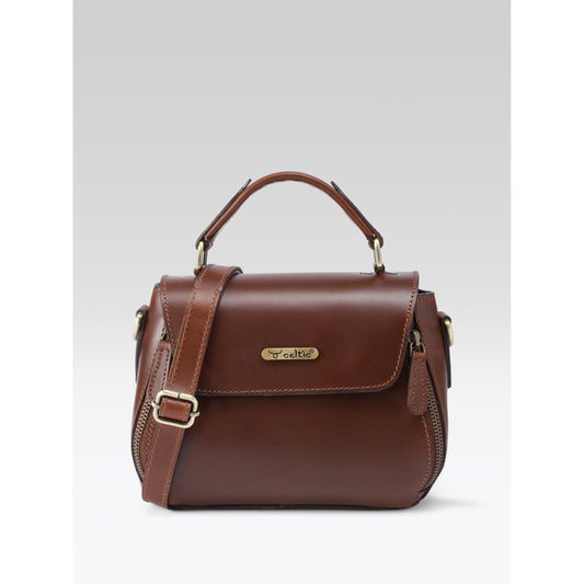 Premium Genuine Leather Top-Handle Handbag with Flap Closure & Zip Compartments