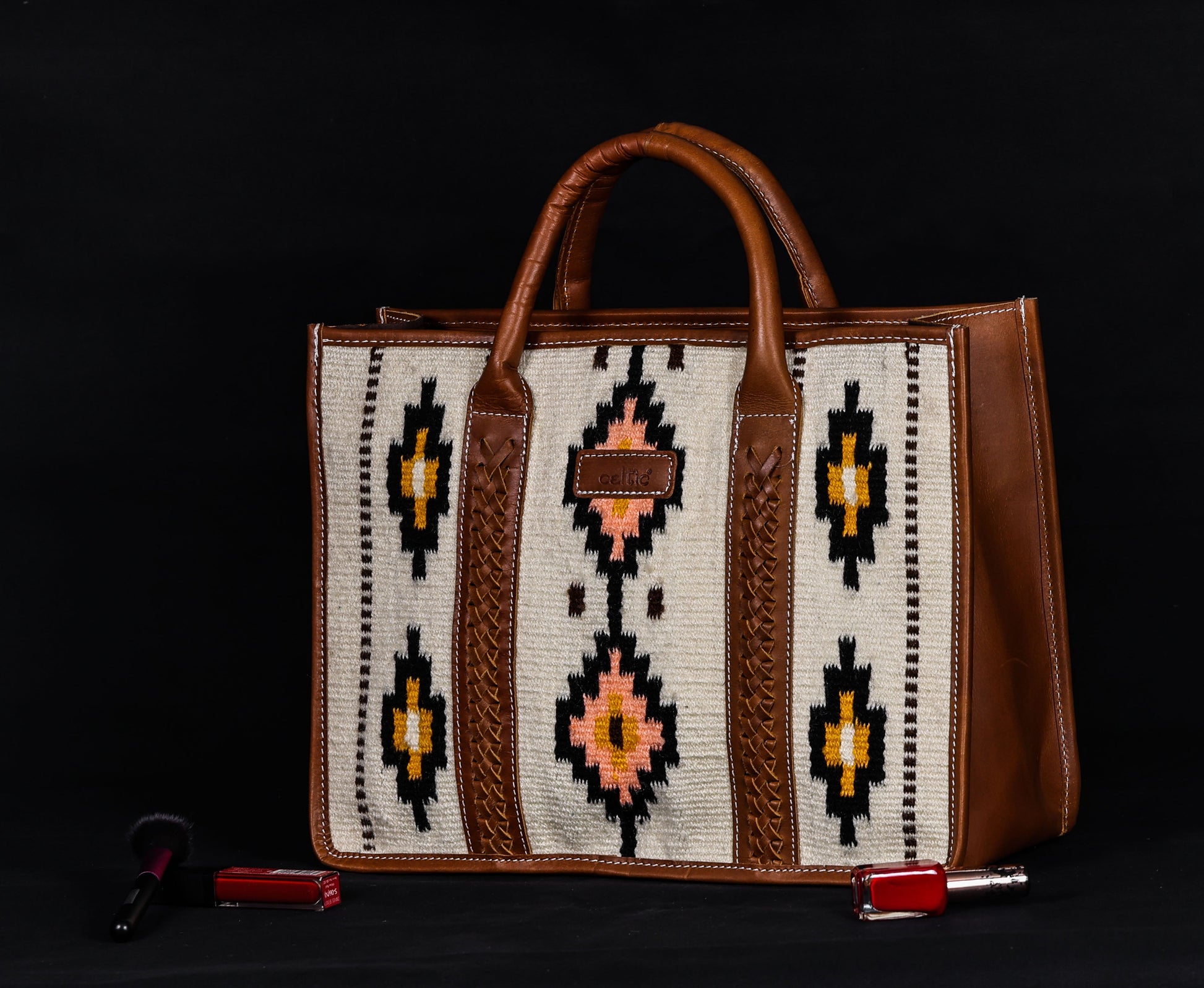 - Elevate your style with the rich, brown leather accents that adorn this tote bag.