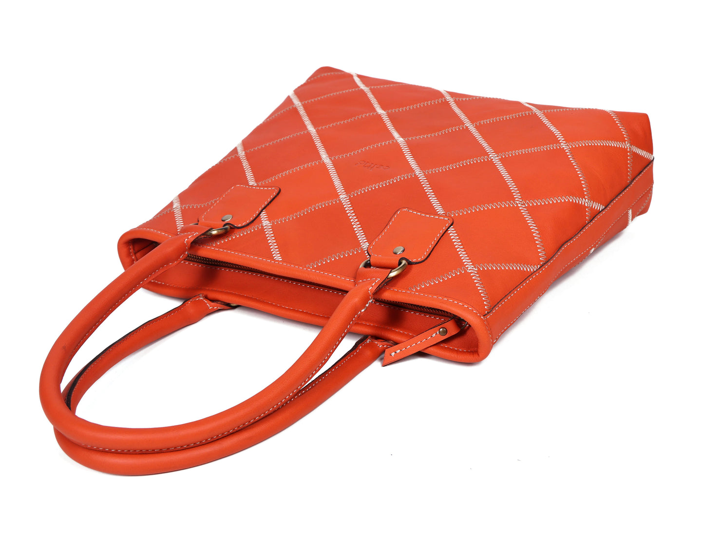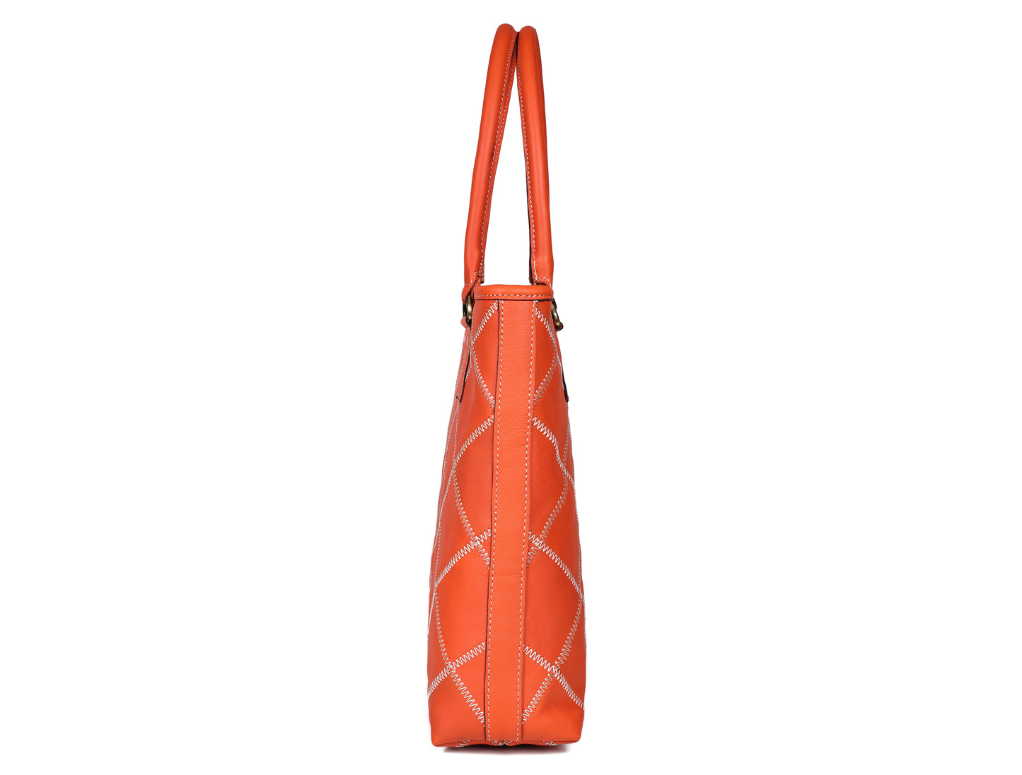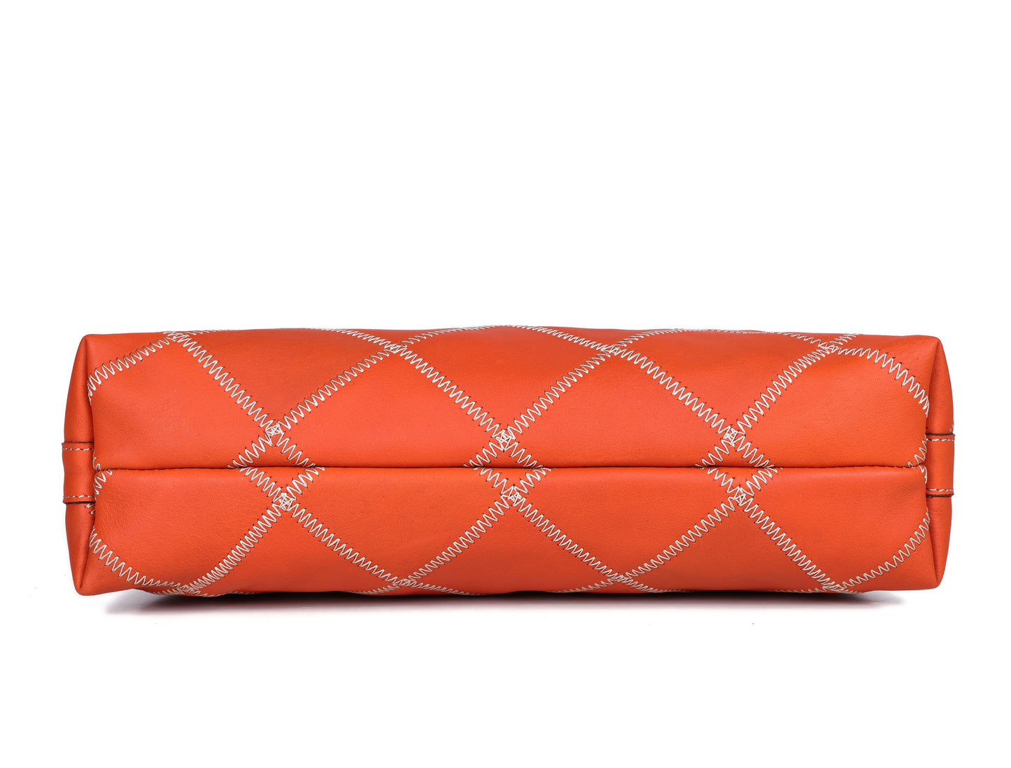 Vibrant Elegance: The tote bag boasts a striking orange hue, adding a touch of vibrancy to your style.