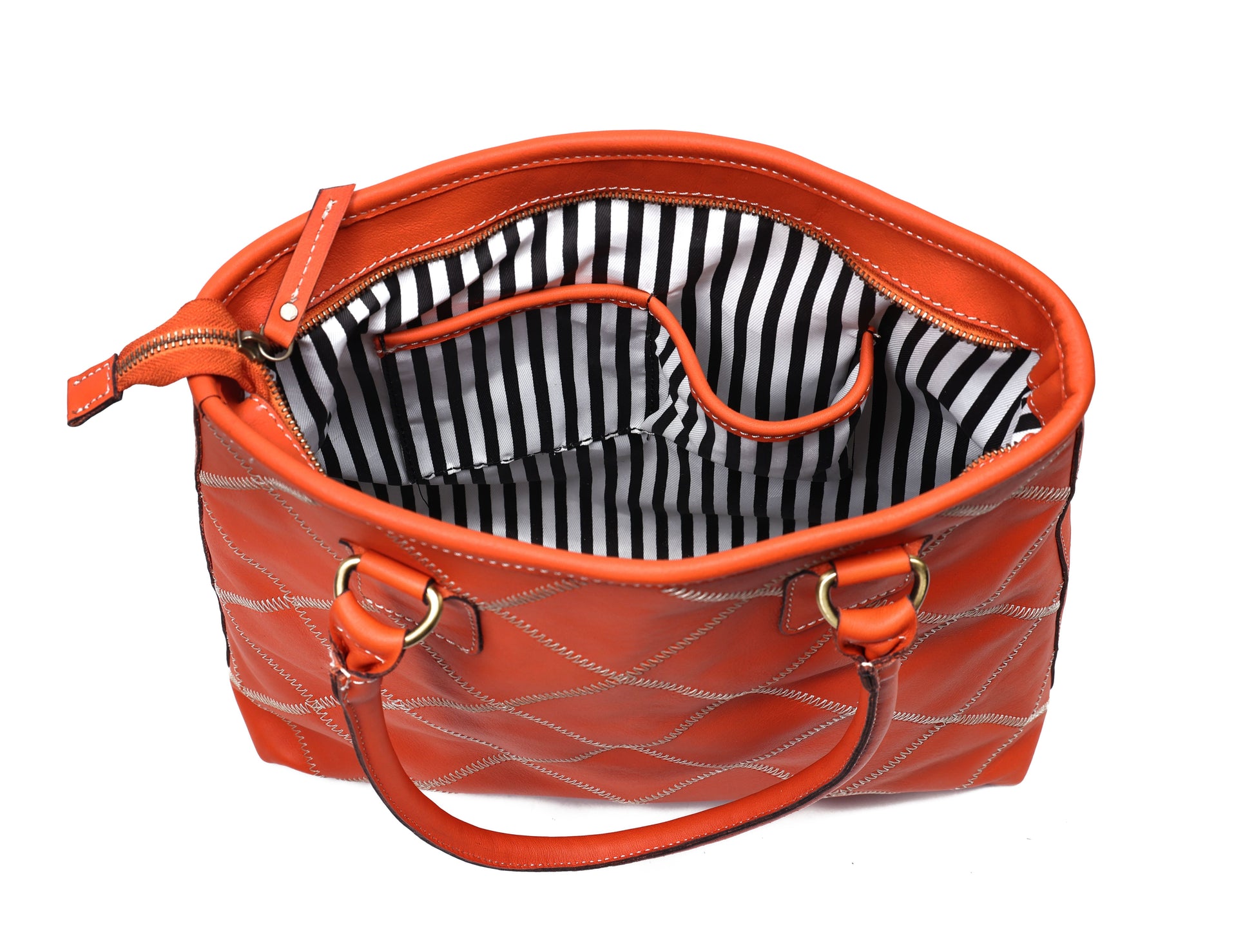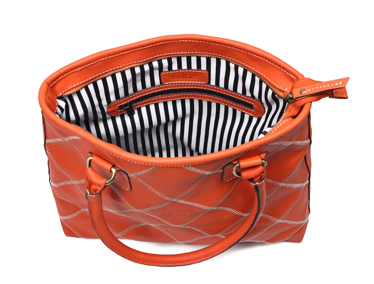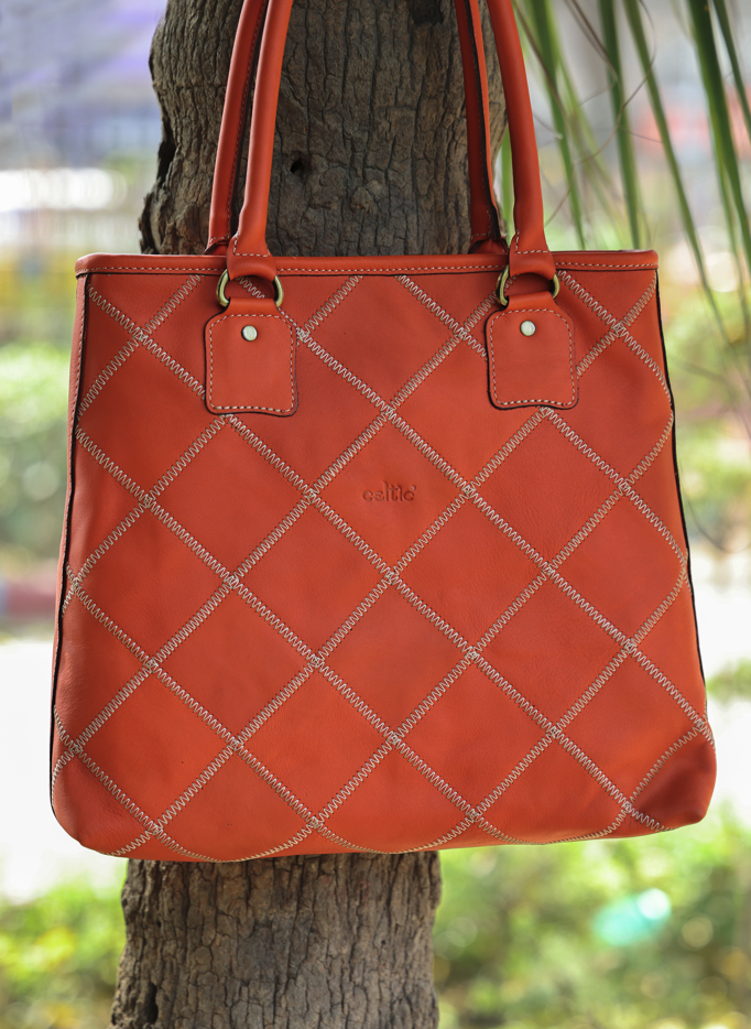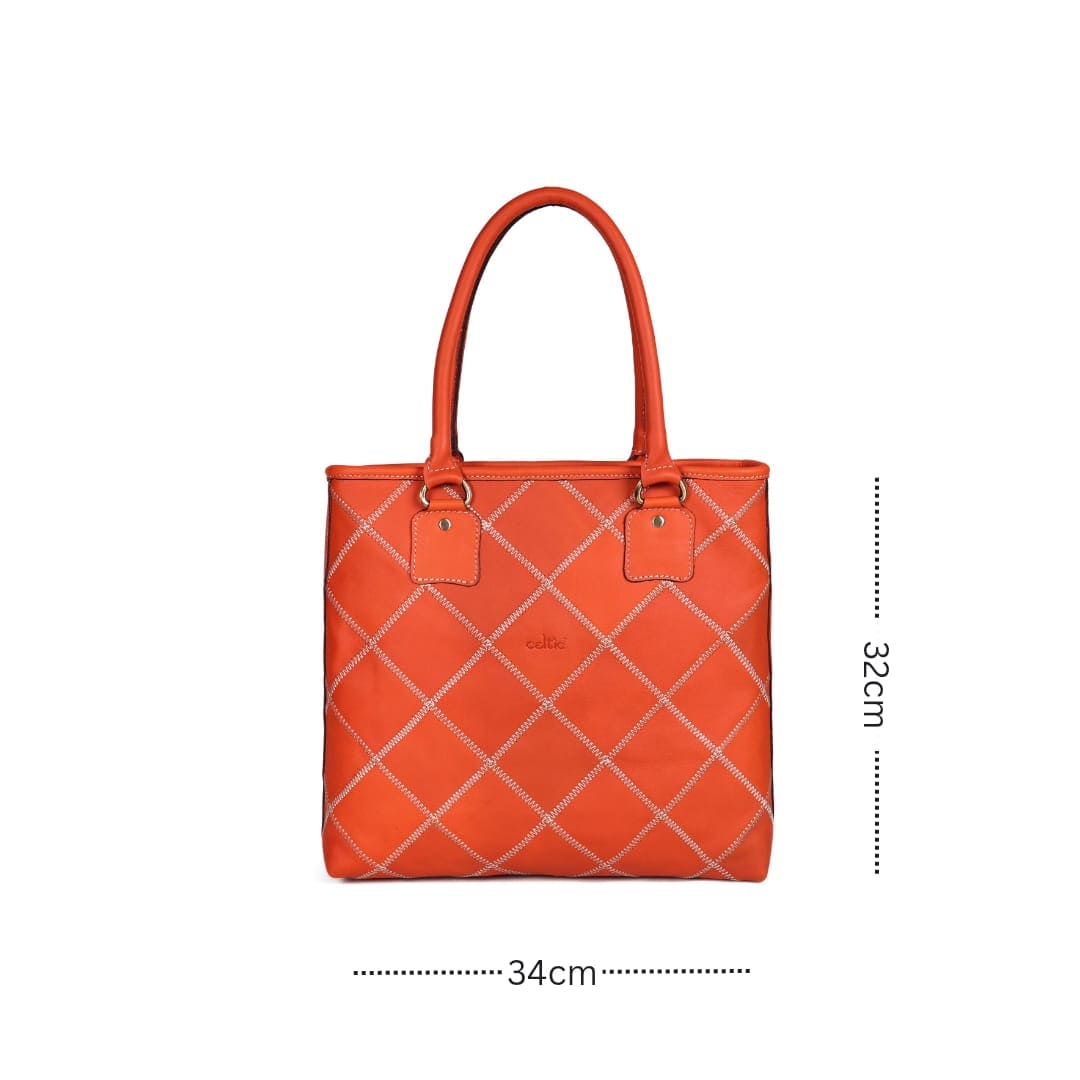 Vibrant Elegance: The tote bag boasts a striking orange hue, adding a touch of vibrancy to your style.