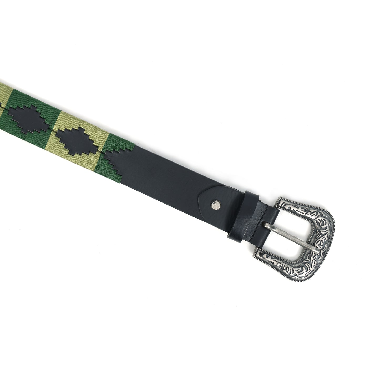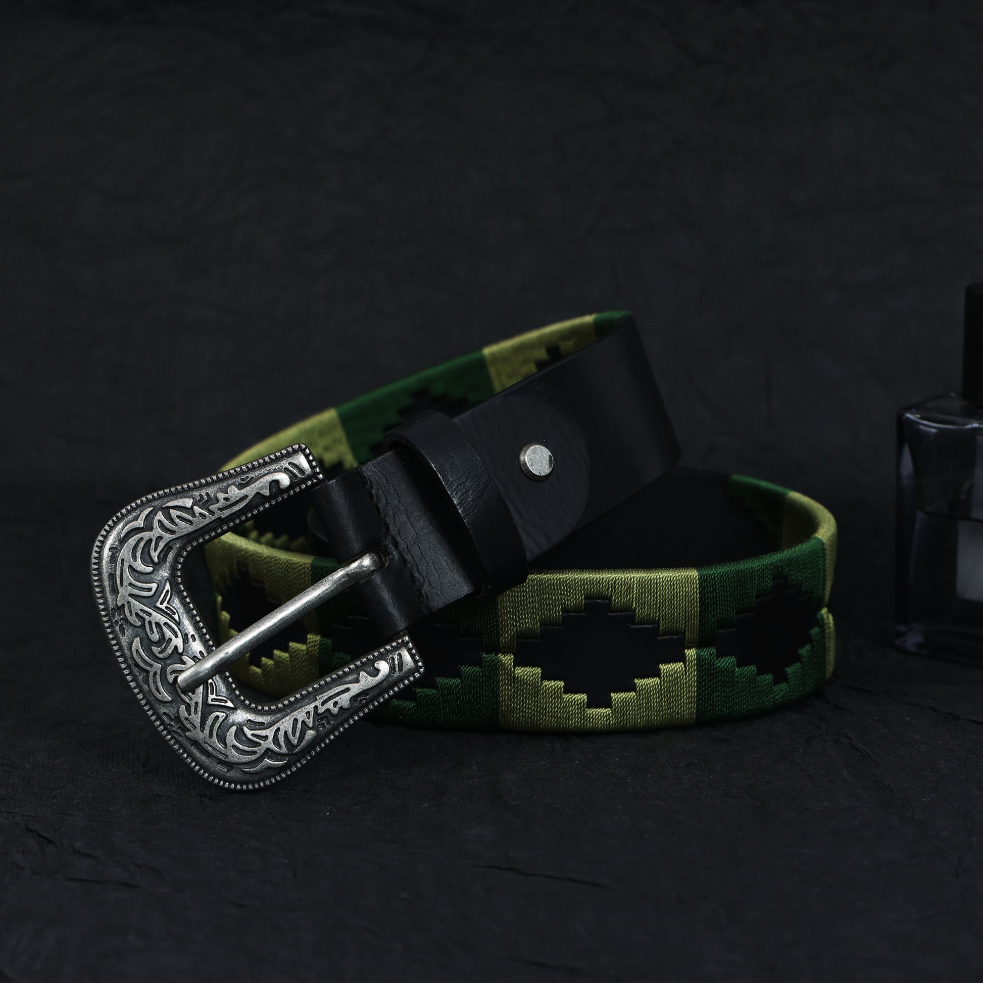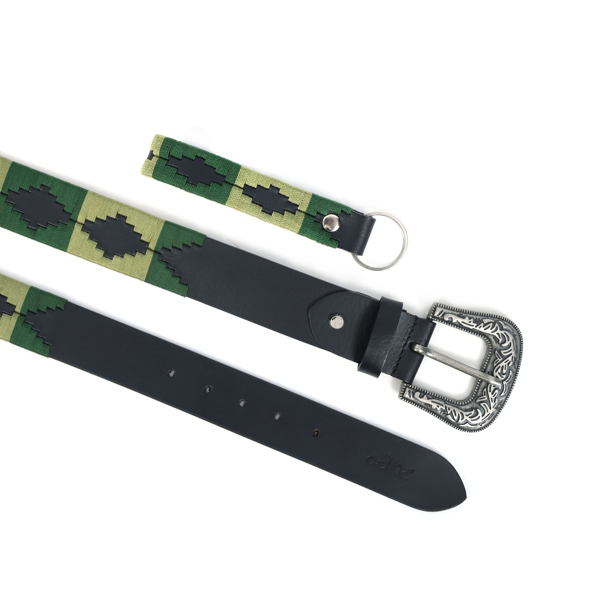 Elevate your style with the Celtic designer black leather polo belt, featuring striking green webbing and a premium designer buckle. Crafted for elegance and durability, this premium belt comes with a matching keyring for a refined finishing touch.