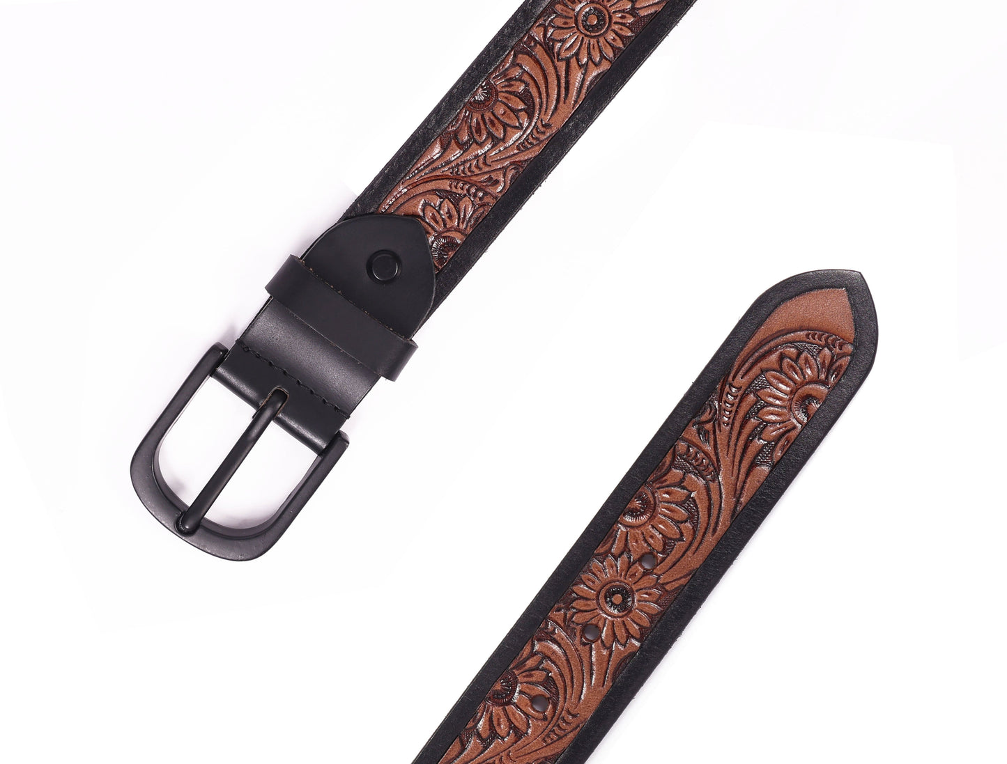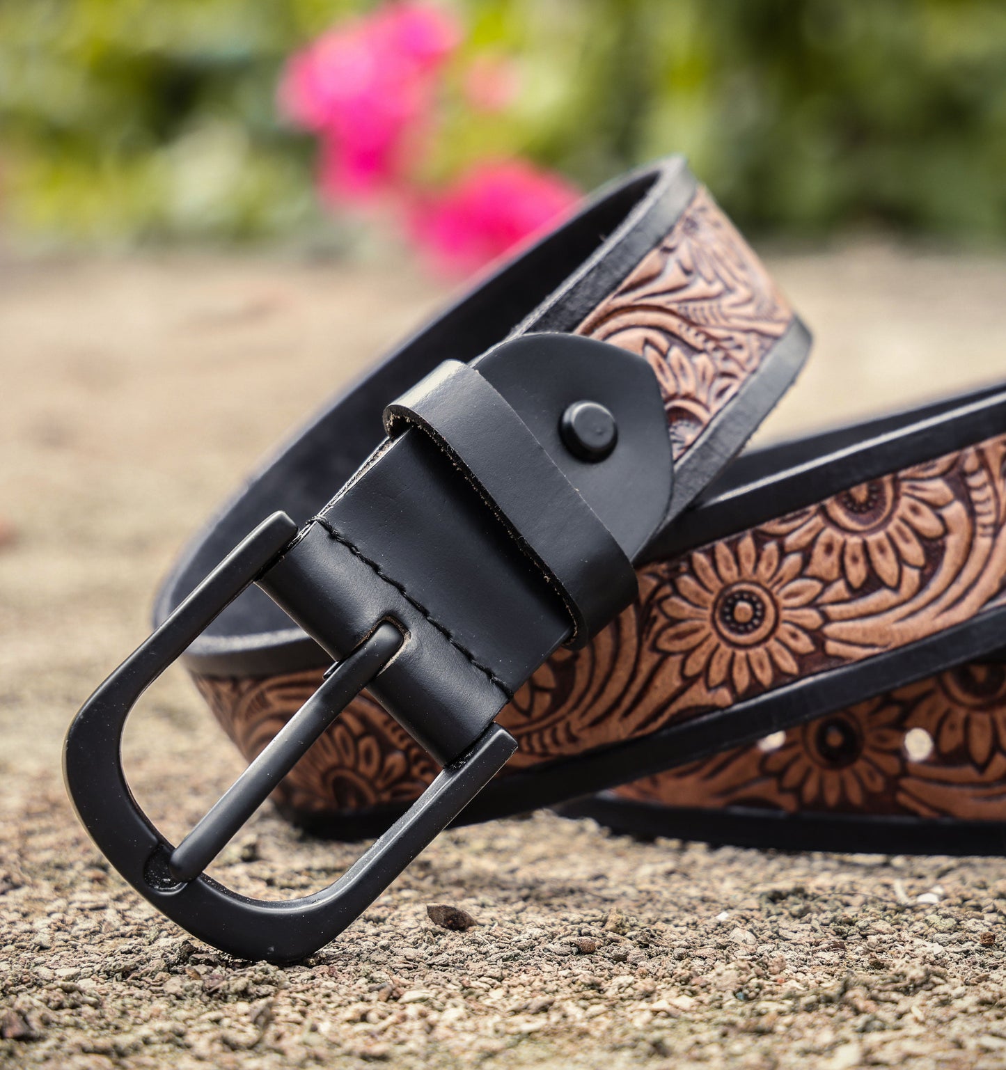 1. Hand-Carved Elegance: Each belt is skillfully hand-carved by our master craftsmen, ensuring no two are exactly alike. The intricate patterns and designs on the leather showcase the rich heritage of Indian craftsmanship.