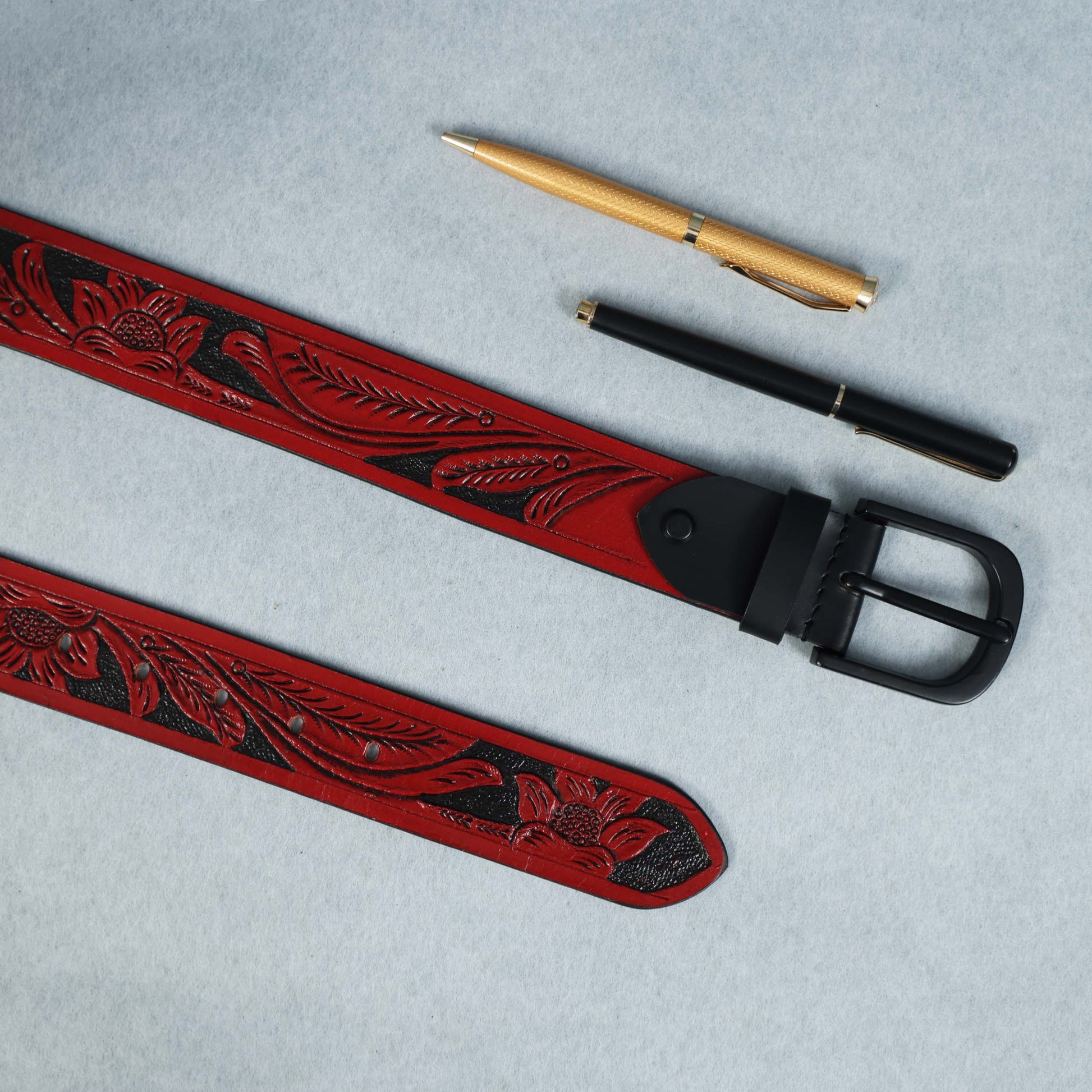 Elevate your wardrobe with this handcrafted brown leather belt, meticulously carved by skilled artisans for a unique, stylish look. Made from premium quality leather, this belt features intricate hand-carved details, adding a touch of craftsmanship and sophistication to any outfit. Whether you're dressing up for a formal occasion or adding a rugged edge to casual wear, this versatile belt is the perfect accessory. Durable, comfortable, and eye-catching, it's designed to stand the test of time.