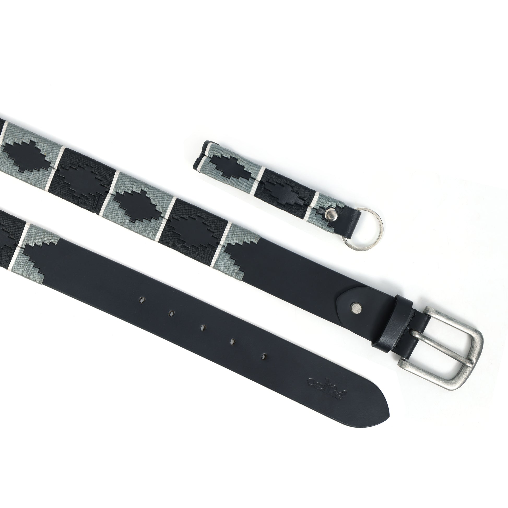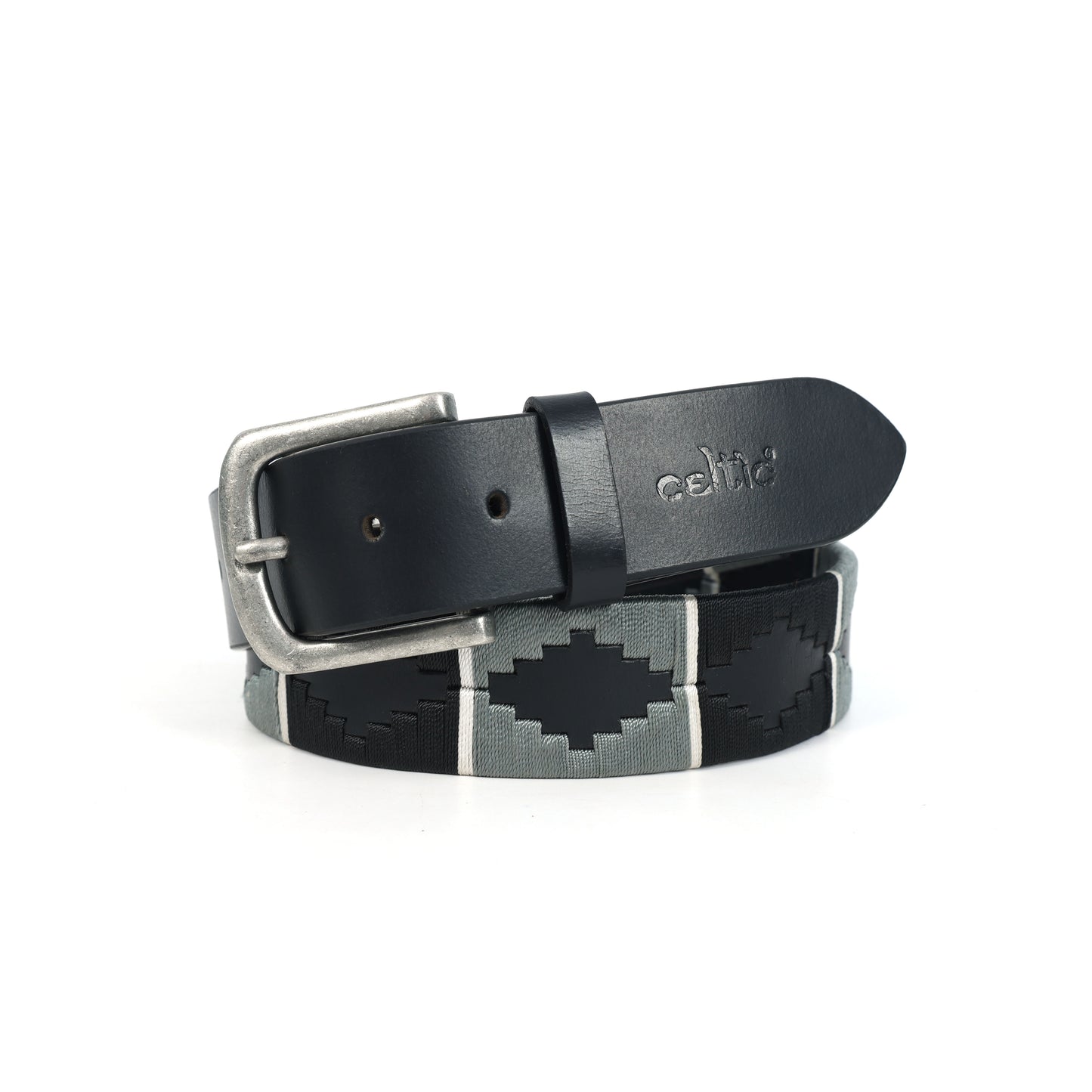 High-quality leather with hand-stitched, durable waxed nylon thread.Elevate your style with the Celtic New Premium Leather Polo Belt. Featuring high-quality grey and black webbing with a sleek leather finish, this belt combines durability with timeless sophistication—perfect for any occasion.