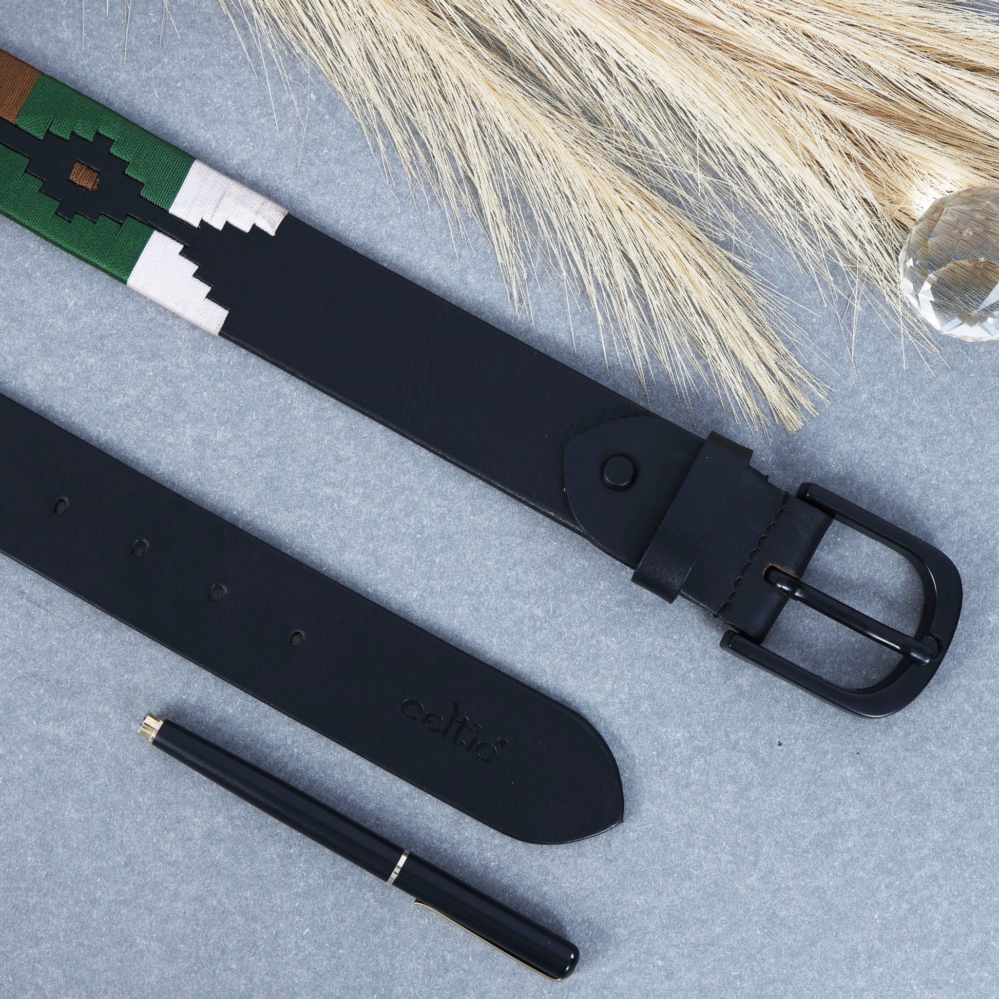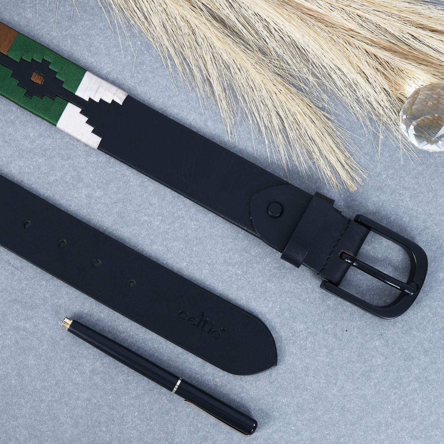 Elevate your style with this premium black leather belt featuring a sleek black buckle and vibrant multicolor stitching. Designed for durability and elegance, this statement accessory is perfect for casual and formal wear. Upgrade your wardrobe with this designer belt today!