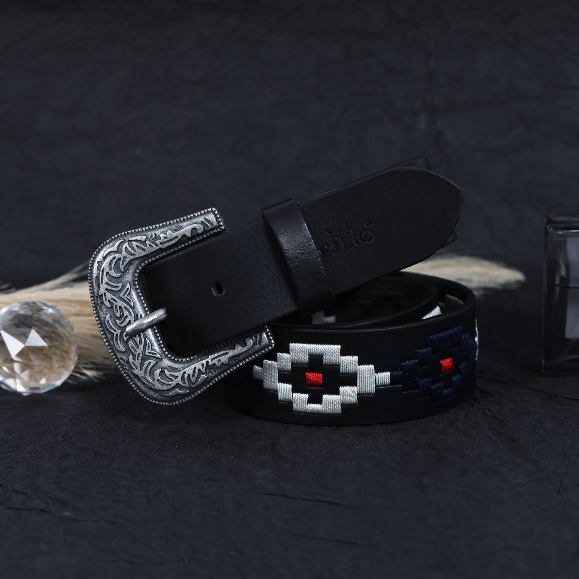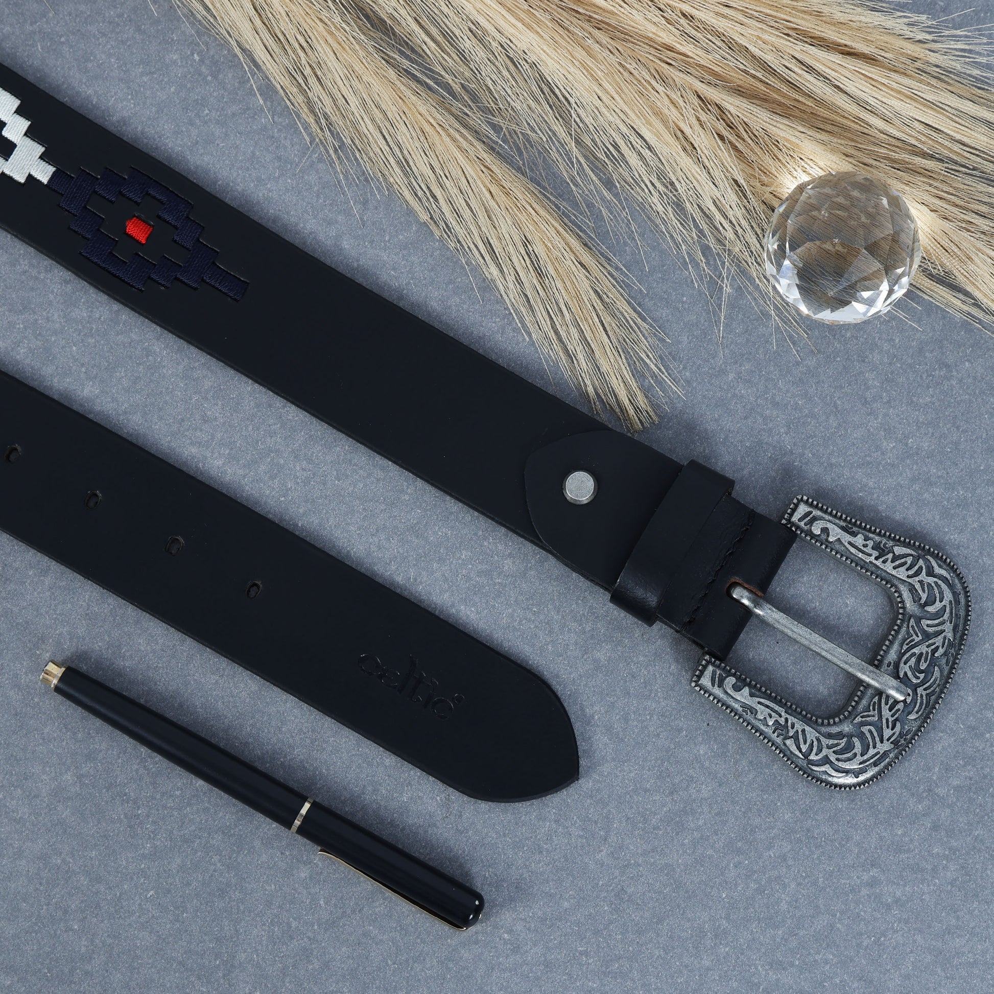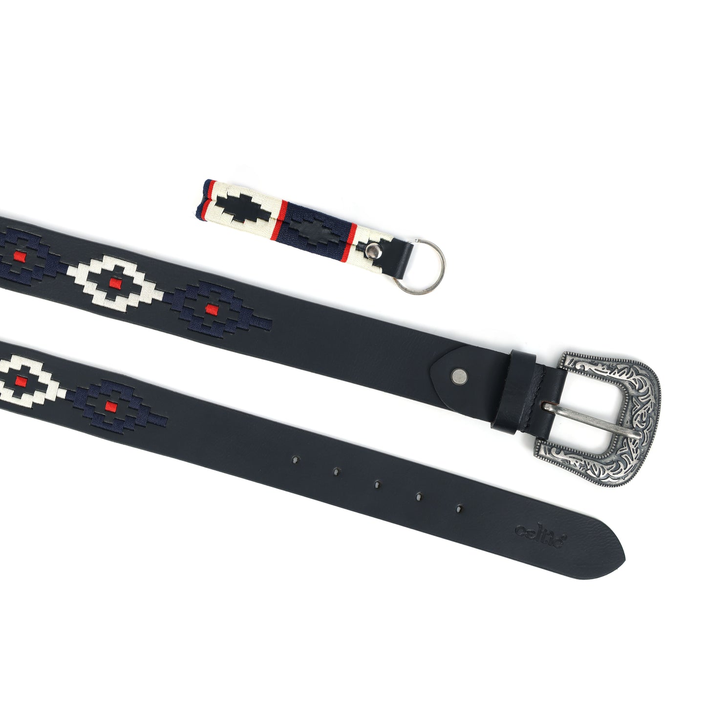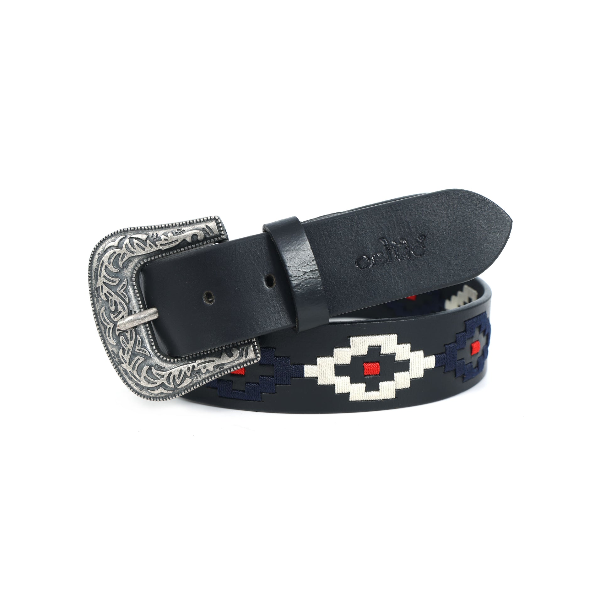 Elevate your style with the Celtic Premium Black Leather Polo Belt, featuring a striking silver designer buckle and vibrant multicolour webbing. Crafted for durability and sophistication, it comes with a matching keyring for added flair.