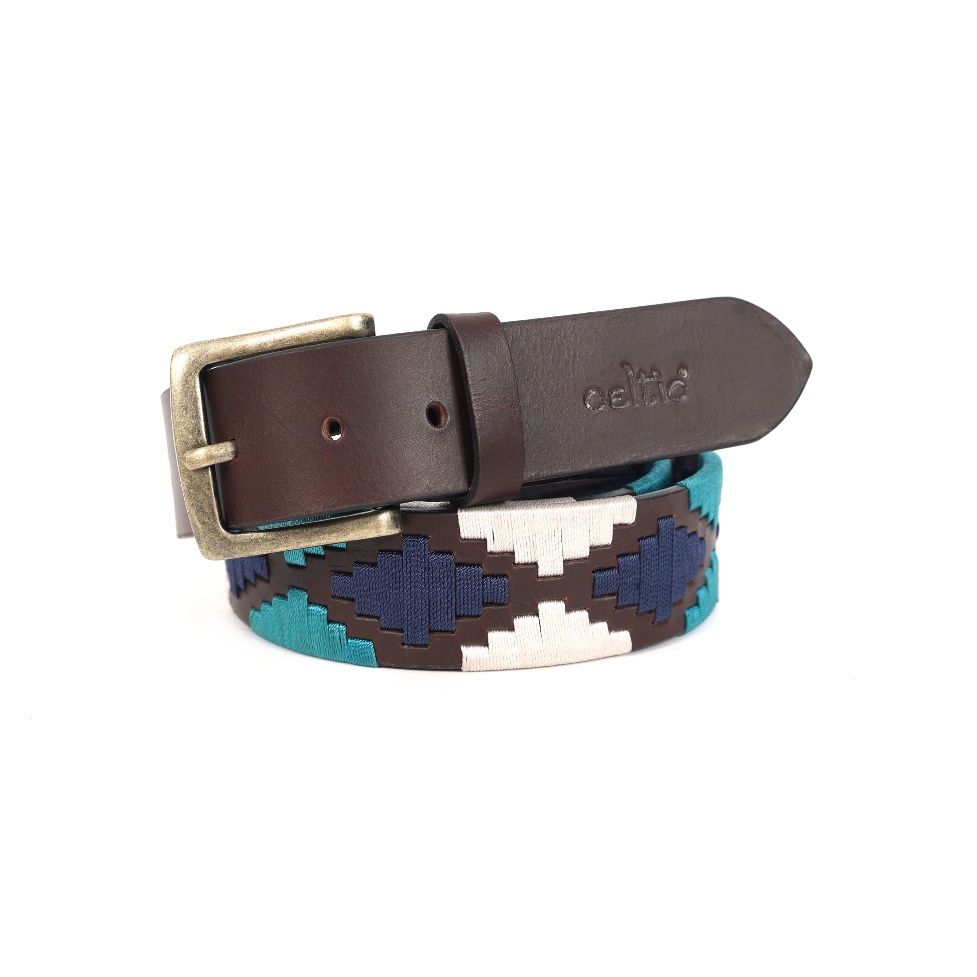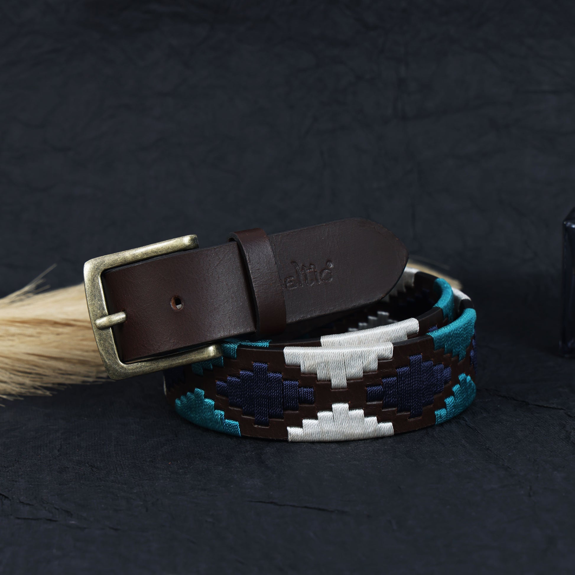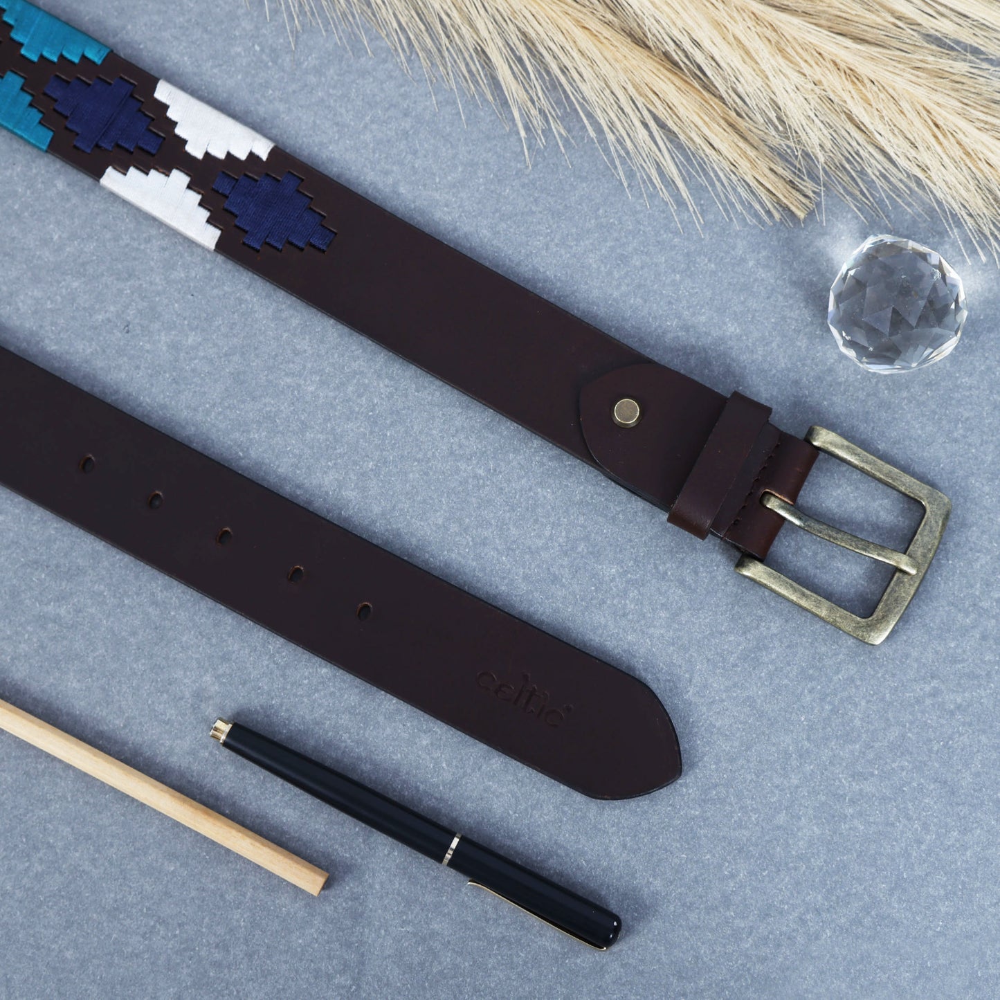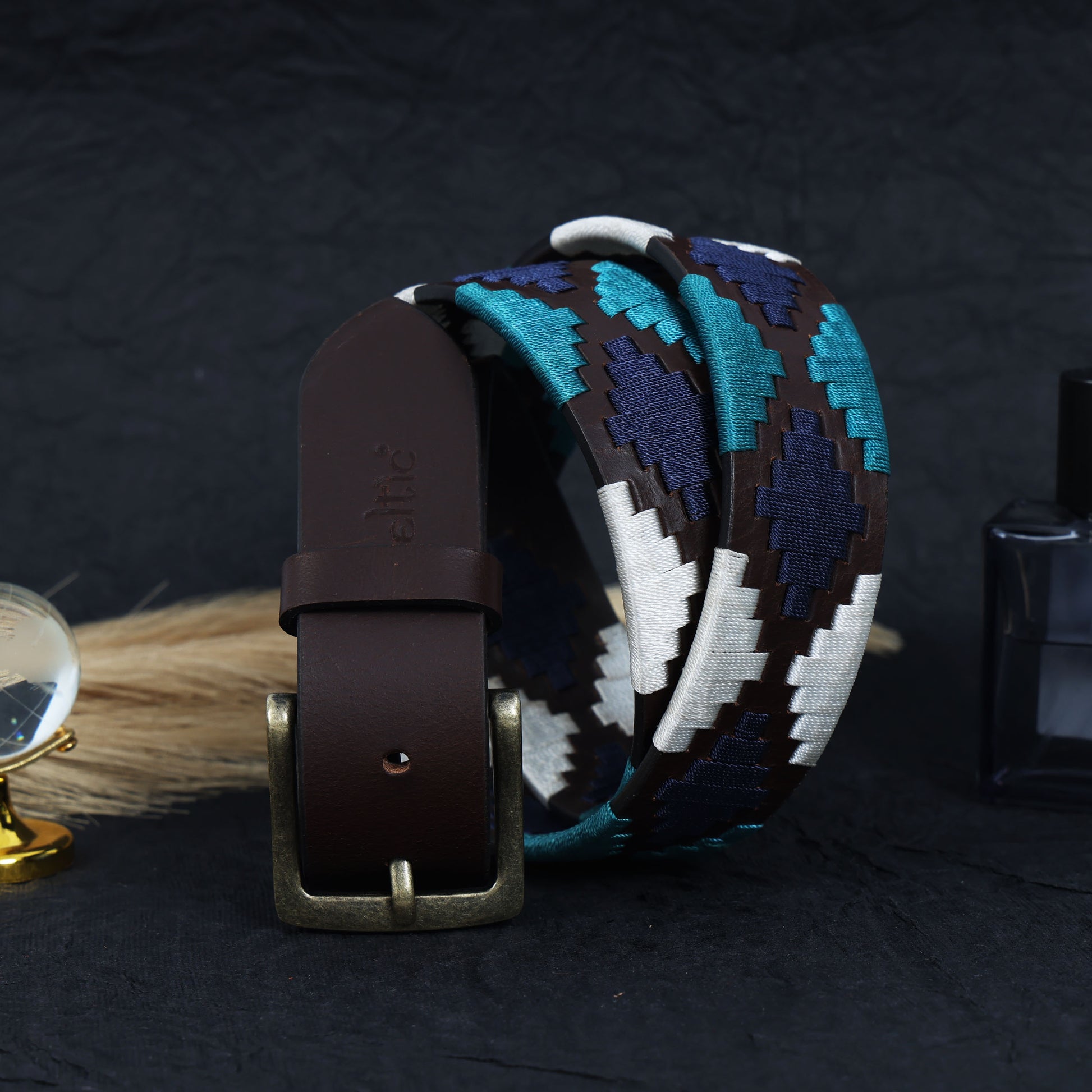 Elevate your style with this premium brown leather belt, featuring a striking golden buckle and vibrant multi-color stitching. Crafted for durability and elegance, this versatile belt adds a touch of sophistication to any outfit. Perfect for casual and formal wear. Shop now!