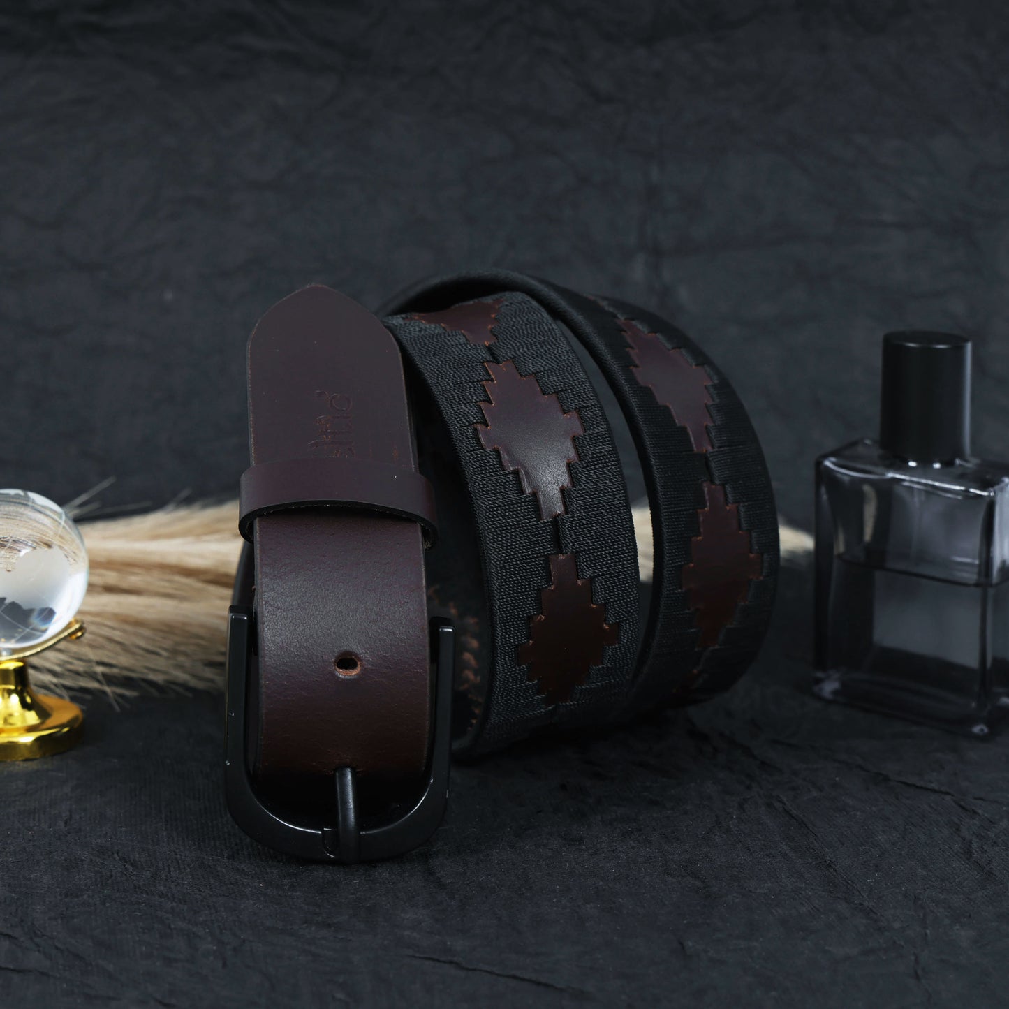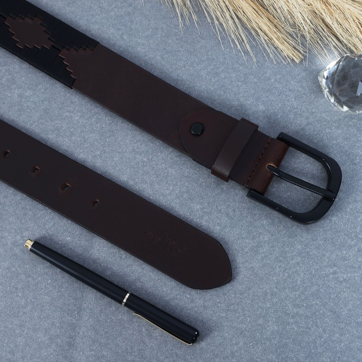 Premium Brown Leather Polo Belt with Black Webbing – Stylish and Durable Accessory. LB-869